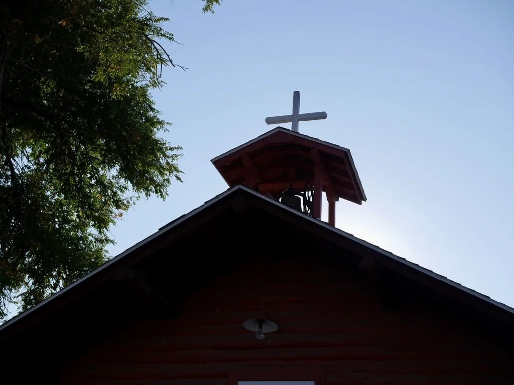 Reverend Roxanne Friday is an enrolled member of the Eastern Shoshone Tribe and is the priest at Our Father’s House. That’s the red-log church in the circle that still holds service.